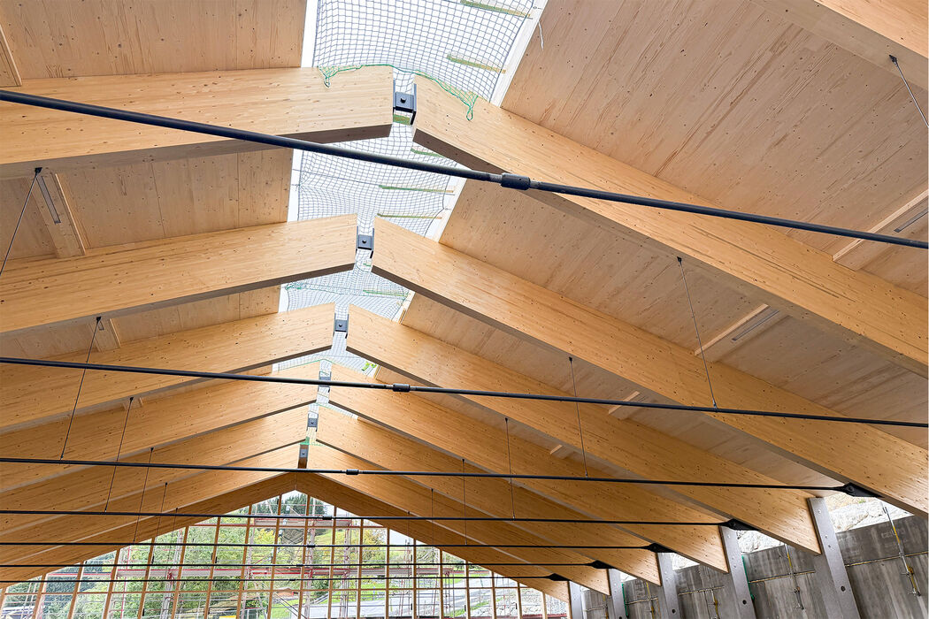 Das Dach der Reithalle ist fast fertiggestellt – so bleiben Pferd und Reiter bei jedem Wetter trocken. Die Glasfassade an der Stirnseite schützt vor Wind und gewährt weiterhin schöne Ausblicke in die Allgäuer Bergwelt. Gemütliches Eislaufen, auch wenn Schnee fällt und Reitstunden im Sommerregen – perfekten Urlaubstagen steht nichts mehr im Weg.