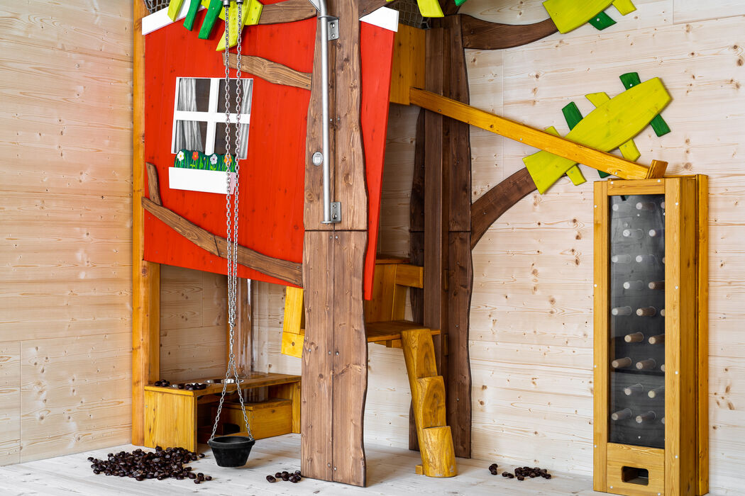 Der neue Holz-Spielplatz sorgt bereits für Farbe in der Spielscheune. Hier werden schon bald fleißige Kinderhände mit Kastanien spielen, während Mama und Papa gemütliche einen Kaffee genießen können. Wir freuen uns schon auf strahlende Kinderaugen und zufriedene Eltern.