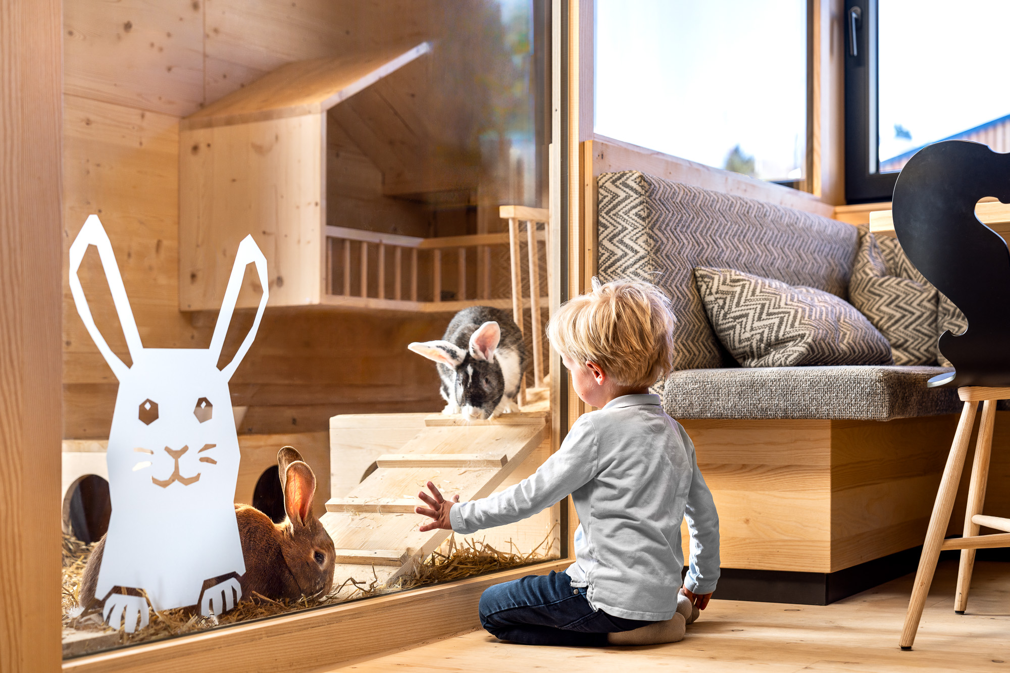Unsere lieben Streicheltiere genießen ihr großzügiges, neues Außengelände mit fantastischem Ausblick in die Bergwelt. Esel, Hasen, Ziegen und Schafe freuen sich auf Streicheleinheiten. Gemeinsam mit unseren Animateurinnen können Ihre Kleinen auch den Tierführerschein ablegen.