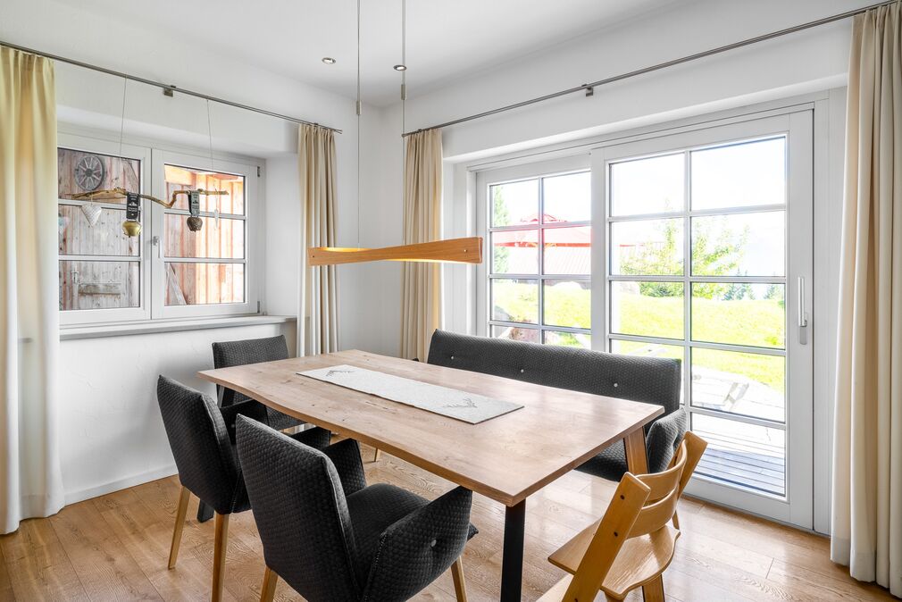 Großzügiges Familien-Chalet über drei Stockwerke in direkter Nähe zu Streichelzoo und Reitstall. Mit ca. 150 m Entfernung vom Hotel weit genug weg, um echter Familien-Rückzugsort zu sein, gleichzeitig nahe genug, um jederzeit unkompliziert die komplette Hotel-Infrastruktur nutzen zu können.Eigene Garage, gemütliches Wohnzimmer mit Kamin, Esszimmer mit großzügiger Küche, drei Schlafzimmer mit jeweils zwei Schlafplätzen, ein Schlafzimmer mit Familienbett (210x270 cm) und jeweils genügend Platz für ein zusätzliches Gitterbett. Modern-gemütliche Einrichtung mit individueller Möblierung.