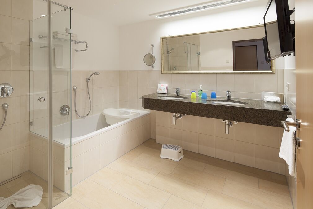 Großzügige Familien-Chalet-Wohnung in direkter Nähe zu Streichelzoo und Reitstall. Mit ca. 150 m Entfernung vom Hotel weit genug weg um echter Familien-Rückzugsort zu sein, gleichzeitig nahe genug um jederzeit unkompliziert die komplett Hotel-Infrastruktur nutzen zu können.Eigene Garage, großzügiges Wohn- Esszimmer, Eltern-Schlafzimmer mit Doppelbett genügend Platz für ein zusätzliches Gitterbett, Kinderzimmer mit Stockbett und genügend Platz für ein zusätzliches Gitterbett. Rustikal-gemütliche Einrichtung mit individueller Möblierung.