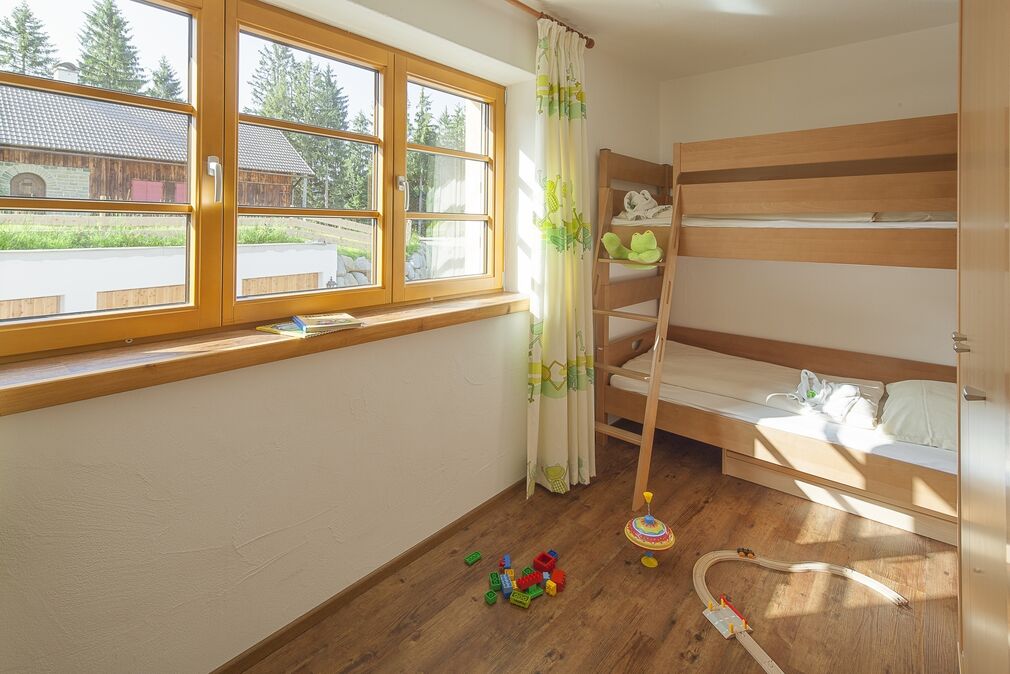 Großzügige Familien-Chalet-Wohnung in direkter Nähe zu Streichelzoo und Reitstall. Mit ca. 150 m Entfernung vom Hotel weit genug weg um echter Familien-Rückzugsort zu sein, gleichzeitig nahe genug um jederzeit unkompliziert die komplett Hotel-Infrastruktur nutzen zu können.Eigene Garage, großzügiges Wohn- Esszimmer, Eltern-Schlafzimmer mit Doppelbett genügend Platz für ein zusätzliches Gitterbett, Kinderzimmer mit Stockbett und genügend Platz für ein zusätzliches Gitterbett. Rustikal-gemütliche Einrichtung mit individueller Möblierung.