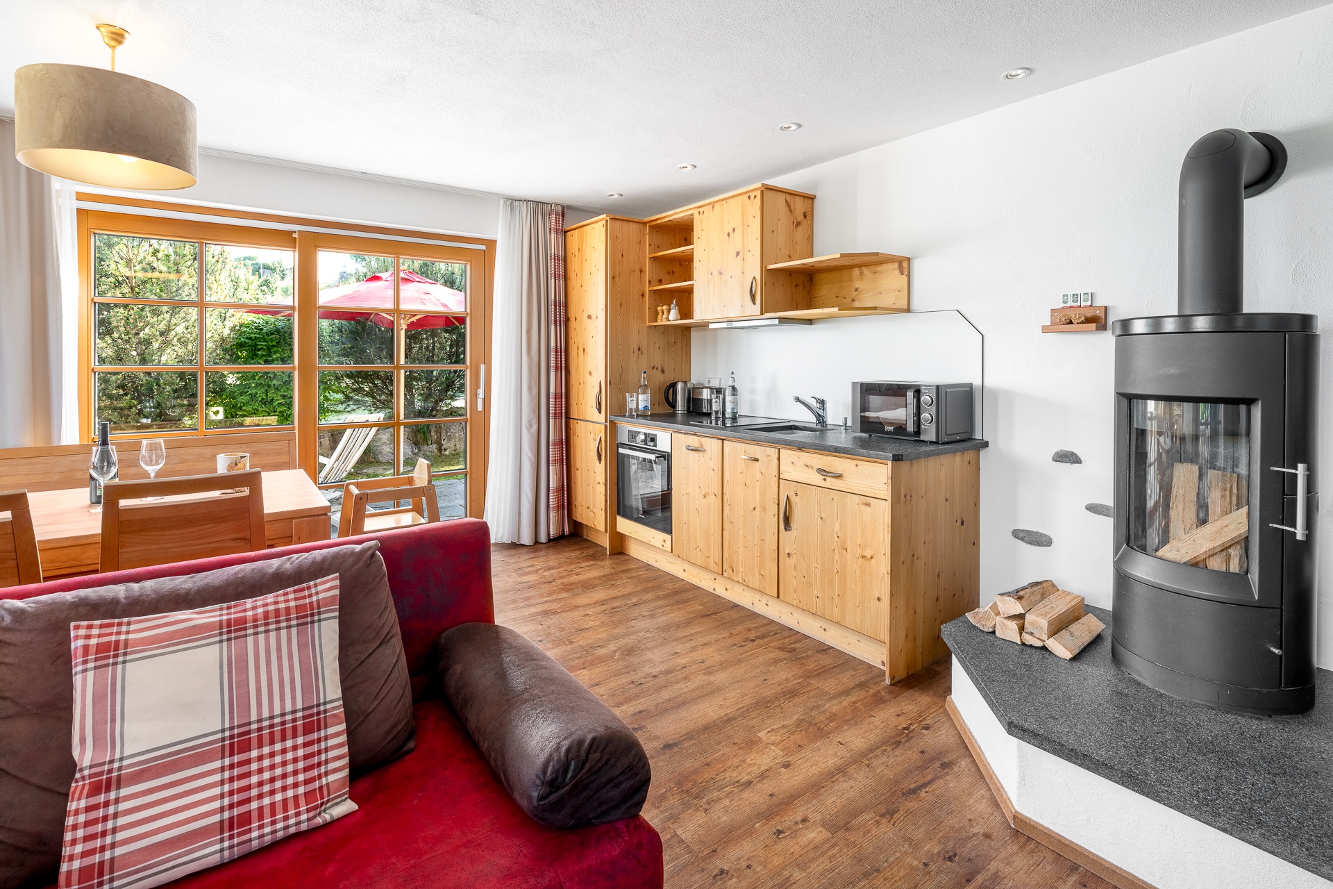 Großzügige Familien-Chalet-Wohnung in direkter Nähe zu Streichelzoo und Reitstall. Mit ca. 150 m Entfernung vom Hotel weit genug weg um echter Familien-Rückzugsort zu sein, gleichzeitig nahe genug um jederzeit unkompliziert die komplett Hotel-Infrastruktur nutzen zu können.Eigene Garage, großzügiges Wohn- Esszimmer, Eltern-Schlafzimmer mit Doppelbett genügend Platz für ein zusätzliches Gitterbett, Kinderzimmer mit Stockbett und genügend Platz für ein zusätzliches Gitterbett. Rustikal-gemütliche Einrichtung mit individueller Möblierung.