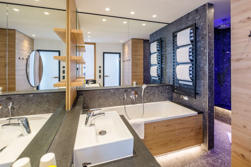 - Private Wellness mit Dampfdusche im Eltern- und Whirlwanne im Kinderbad.